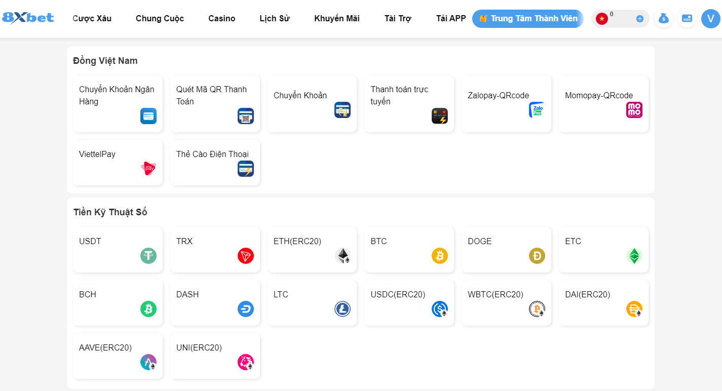 GIAO DỊCH NẠP TIỀN VÀ RÚT TIỀN TẠI 8XBET