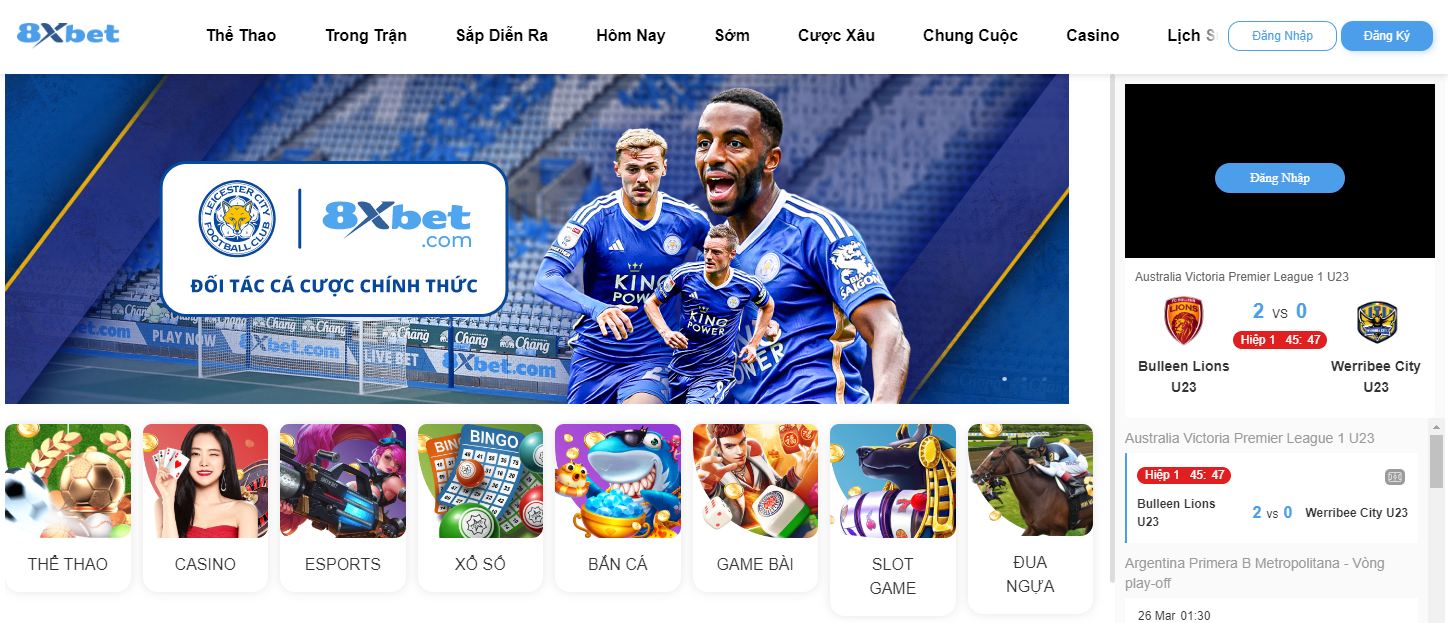 8XBET Live Casino là điểm đến cá cược trực tuyến hàng đầu với cam kết đảm bảo an toàn tuyệt đối, nạp tiền dễ dàng, thanh toán nhanh chóng và nhiều khuyến mãi hấp dẫn, đi kèm với những lượt quay thưởng miễn phí. Hãy đăng ký tài khoản 8XBET ngay hôm nay và đắm chìm trong không gian giải trí Casino vô tận. Chán chường? Không có trong từ điển của chúng tôi! Cuộc phiêu lưu của bạn đang chờ đợi.