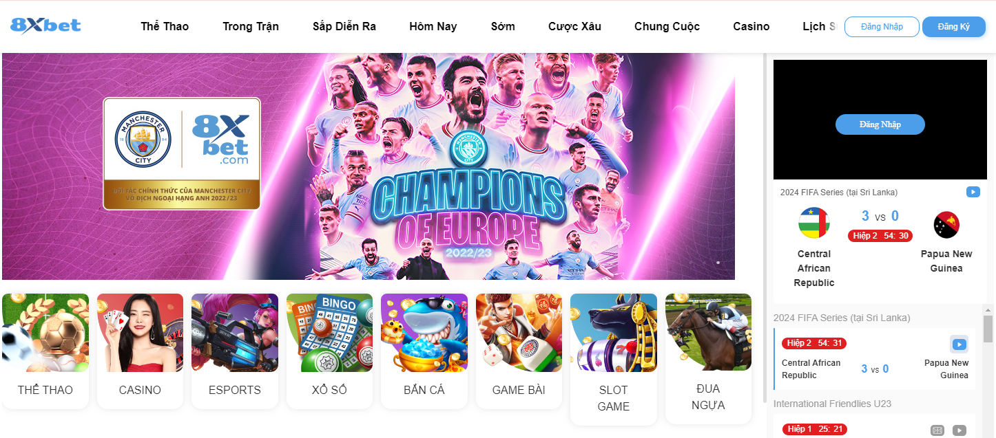 Bước chân vào sân chơi cá cược bóng đá tại 8XBET, bạn sẽ được trải nghiệm không khí sôi động của những trận đấu kinh điển, nơi mỗi pha bóng đều là một nốt nhạc trong bản giao hưởng của sự hào hứng. Từ Premier League, La Liga cho đến các giải đấu cấp câu lạc bộ và quốc tế, 8XBET mang đến cho bạn cơ hội để đặt cược vào đội bóng mà bạn yêu thích và vào những sự kiện mà bạn tin tưởng nhất.