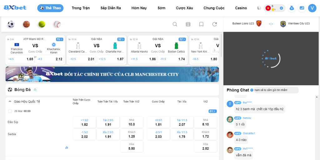 Tại phần “Thể Thao” của 8XBET, bạn sẽ khám phá một thế giới rộng lớn các sự lựa chọn từ bóng đá, bóng rổ, quần vợt đến những môn thể thao điện tử đang thu hút sự chú ý.