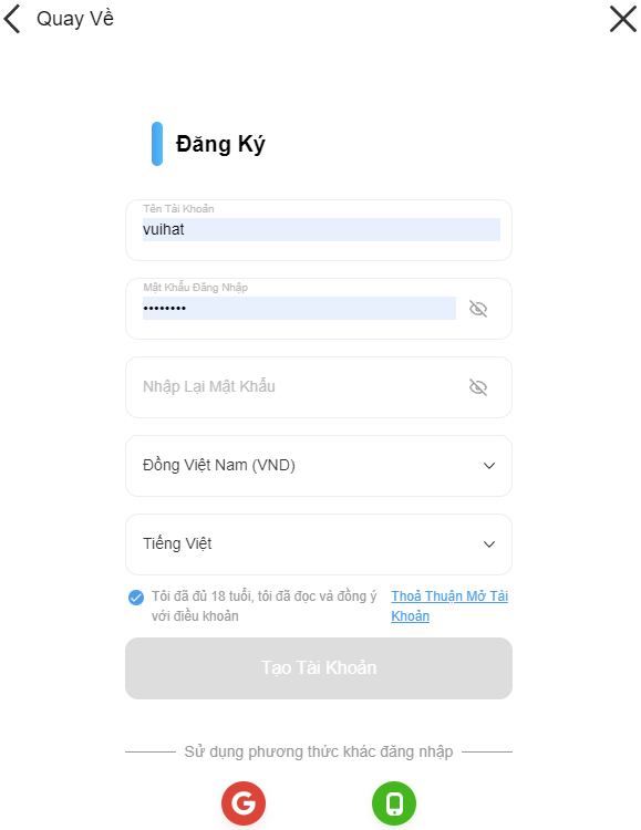 • Nhấn vào nút “Đăng Ký” để hoàn thành.
