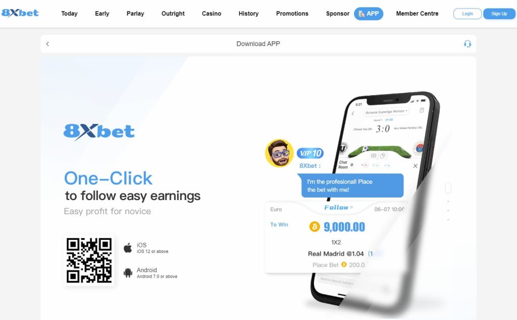 Navigate to the official homepage of 8XBET and locate the “App” section in the top navigation bar. Upon clicking, a QR code will be generated for you to scan, facilitating the download process of the 8XBET app directly to your mobile device.