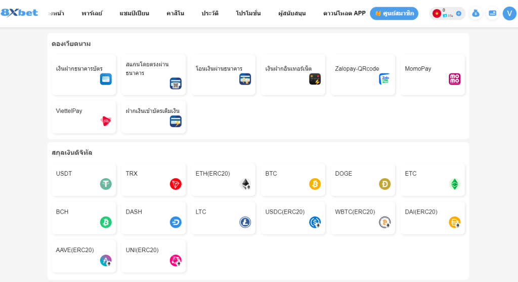 ขั้นตอนที่สอง: ฝากเงินเข้าบัญชี 8XBET