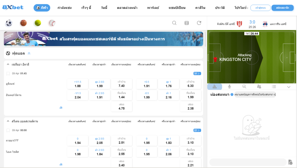 เมื่อก้าวเข้าสู่สนามพนันฟุตบอลที่ 8XBET คุณจะได้สัมผัสกับบรรยากาศที่น่าตื่นเต้นของการแข่งขันแบบคลาสสิก ซึ่งลูกบอลทุกลูกจะมีโน้ตอยู่ในซิมโฟนีแห่งความตื่นเต้น ตั้งแต่พรีเมียร์ลีก ลาลีกา ไปจนถึงสโมสรและการแข่งขันระดับนานาชาติ 8XBET เปิดโอกาสให้คุณเดิมพันทีมโปรดของคุณและเหตุการณ์ที่คุณไว้วางใจมากที่สุด