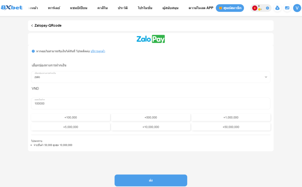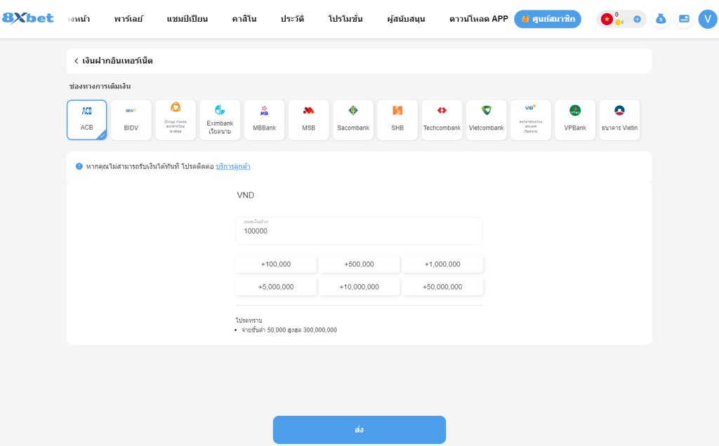 ขั้นตอนการเติมเงินเข้าบัญชีการพนันของ 8XBET