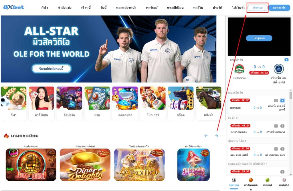 ขั้นตอนที่ 1: เข้าสู่เว็บไซต์ของ 8XBET และล็อกอิน
