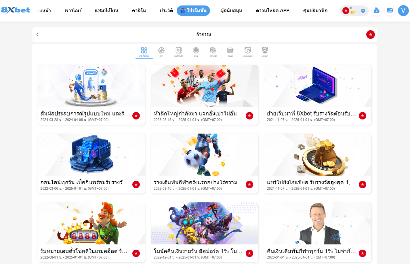 - หมุนโชครางวัลทุกวัน: โอกาสที่จะได้รับรางวัลหมุนโชคทุกวันจะนำเสนอของขวัญที่ไม่คาดคิดและรางวัลมูลค่าจาก 8XBET